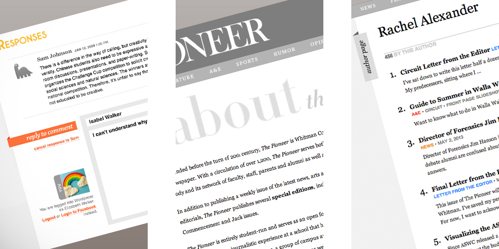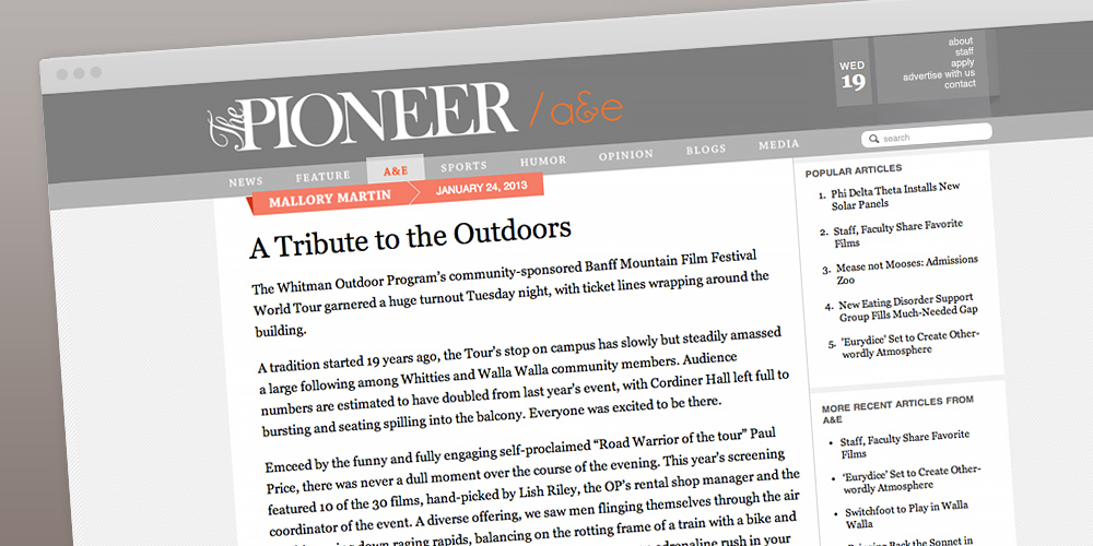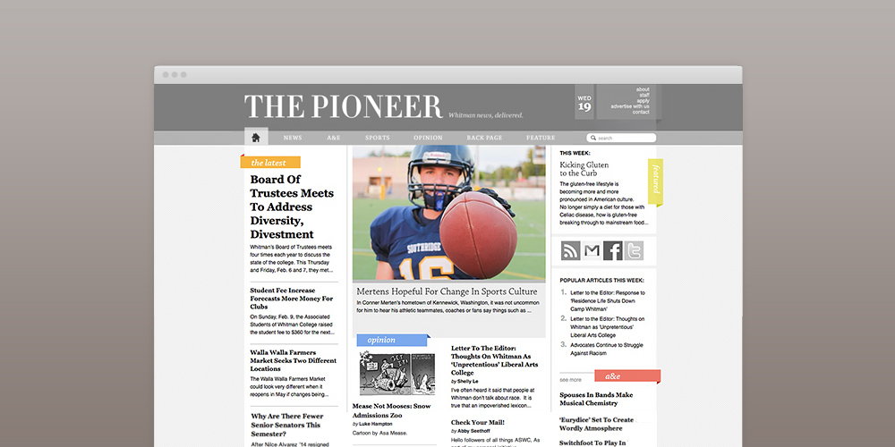 After serving as The Pioneer's Art Director, I was approached by the editors-in-chief to take on the project because of my previous Art Director role at the paper and my interest in web design.